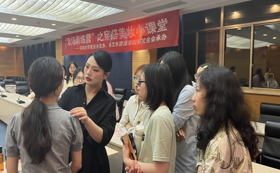 为帮助即将踏入职场的同学们提升形象管理能力,增强面试自信心,5月28日,由tyc太阳成集团9728就业办主办,太阳集团9728研究生会承办的“职场训练营”之穿搭美妆小课堂在西康路校区顺利开课。活动特邀金鹰商贸集团人力资源经理魏宇佳和植村秀资深彩妆师李恩,从职场穿搭和化妆技巧两个方面为同学们带来专业指导。本次活动由彭宇晴同学主持,tyc太阳成集团9728就业办苏春循老师及水文院研辅董叶斓、吴晓芬出席。