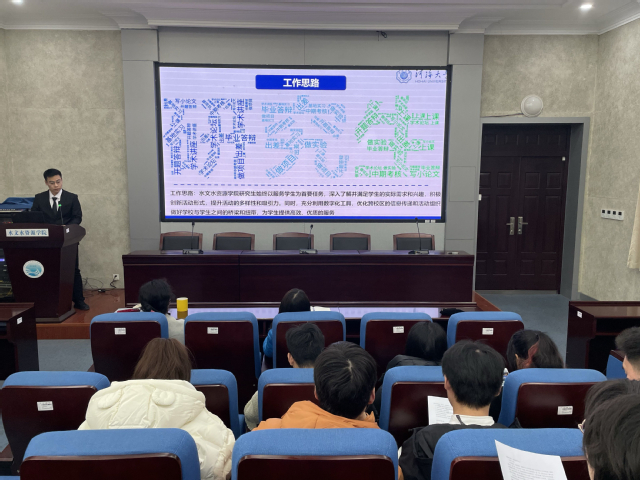 为深入学习贯彻习近平新时代中国特色社会主义思想,推动团学组织改革成果巩固深化,加强我院各团学组织间工作交流,近日,“水韵英才”2023年度学生组织述职评议大会在工程馆召开。学院的党委副书记陈培玲书记、各团学组织负责人及学生代表参加了本次述职评议大会,其他校区团学骨干成员通过线上形式参加了大会。大会由学院团委书记莫晓曼主持。