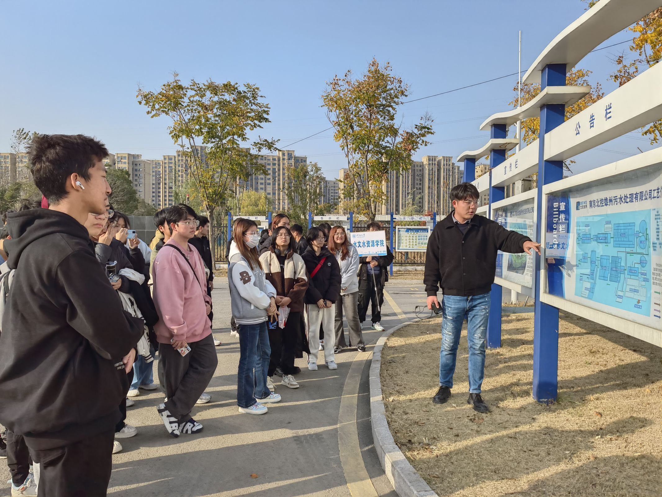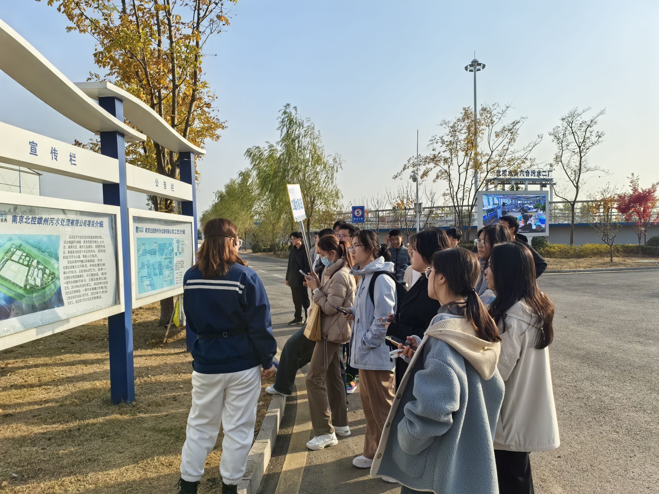 近日,为使我院2023级本科生进一步了解社会,培养、训练理论联系实际,观察问题和分析问题的能力,提升对未来职业规划的方向感,加强对所学专业的自信心,我院组织2023级本科生赴南京北控雄州污水处理有限公司进行实践参观,2023级本科生辅导员许文傧参加活动。