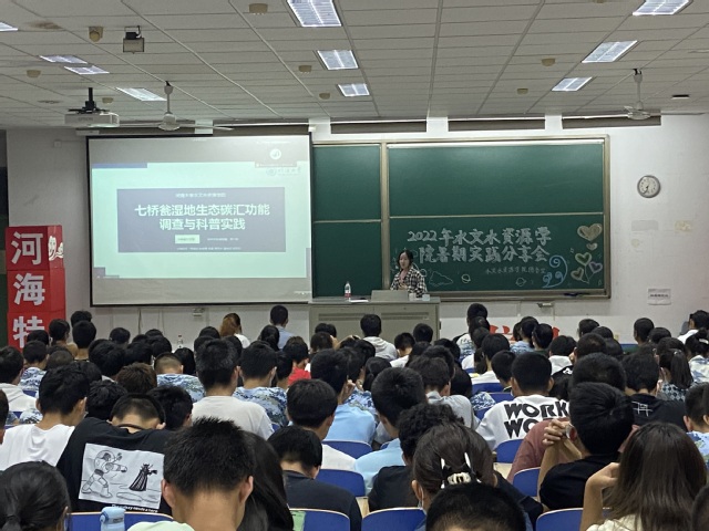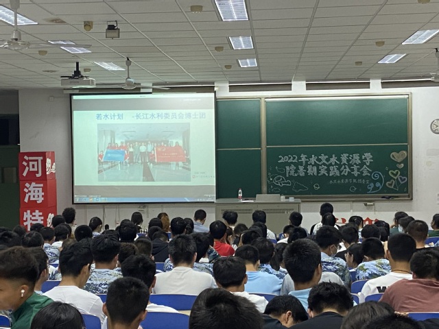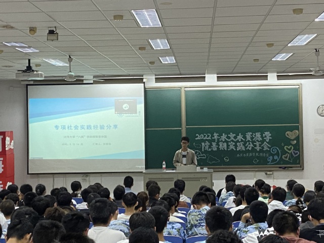 章鋆同学侧重分享了实践选题技巧以及如何更好的与实践地有关部门对接的技巧;孙佳侯同学详细讲解了自己“返家乡”招生宣讲的经验,希望大家在传播河海文化、弘扬河海精神的过程中勇担社会责任,为祖国、为家乡作出力所能及的贡献;张璜皓同学为大家生动讲述了这个暑假乡村支教过程中遇到的难事、趣事和家访感受;江文艳分享了答辩相应技巧,鼓励大家将相应实践历积极加强宣传;王静学姐向大家简要介绍了水文院特色项目“若水计划”,并鼓励大家以后参加进来,走入行业重点单位,走进名山大川,切实感受一名水文人的责任和担当。
