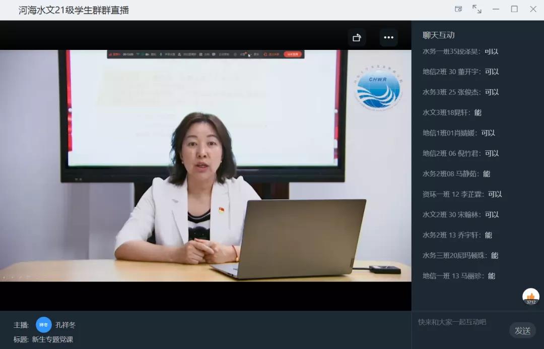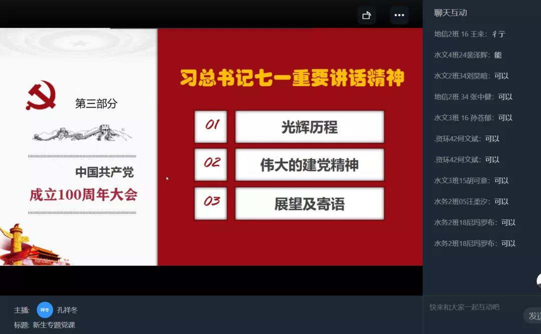 2021年9月28日,水文院党委书记孔祥冬在线上为2021级本科新生讲授题为“学党史、强信念”专题党课。