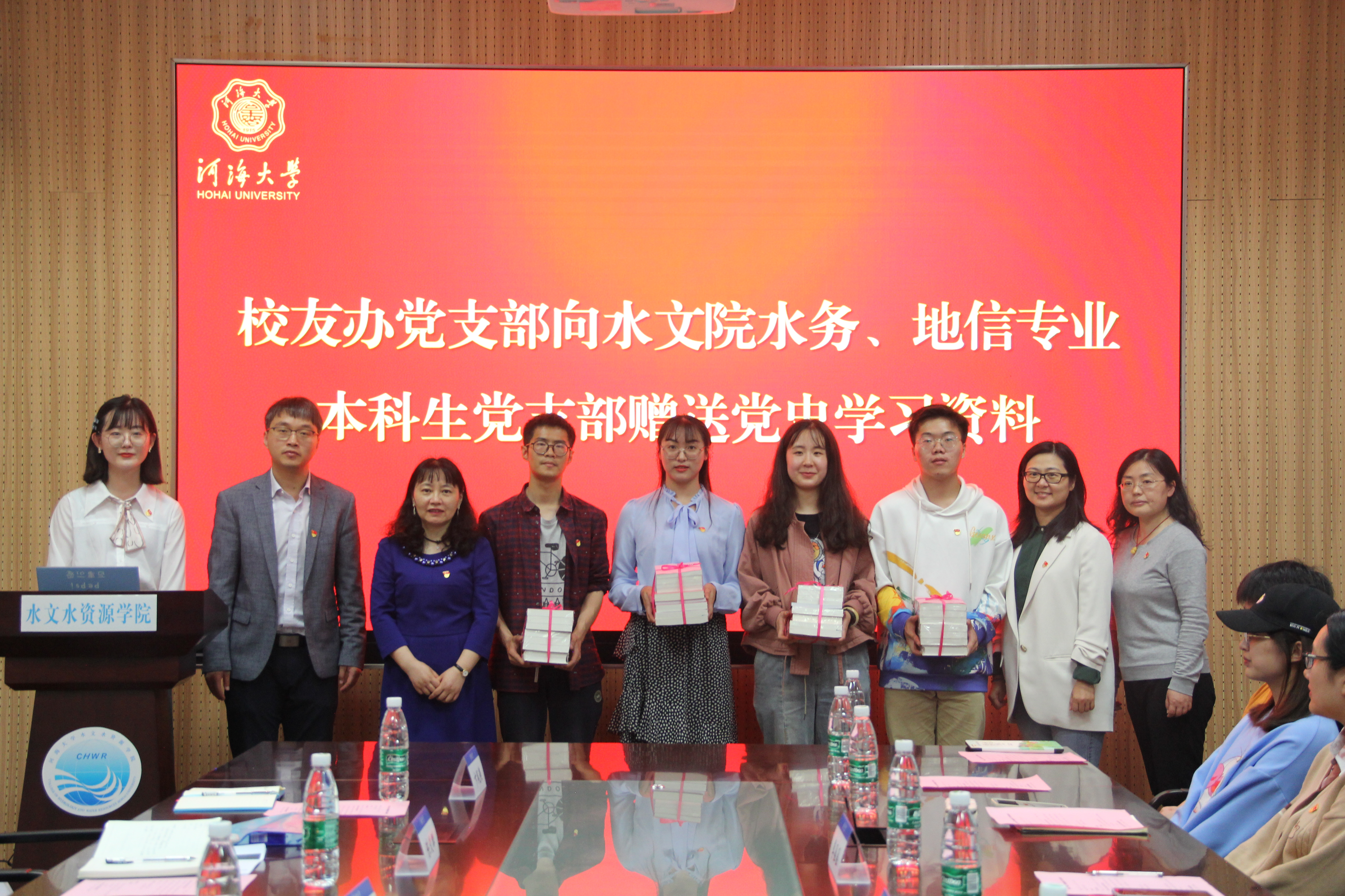 校友办党支部还向水文院水务、地信专业本科生党支部赠送了党史学习资料。