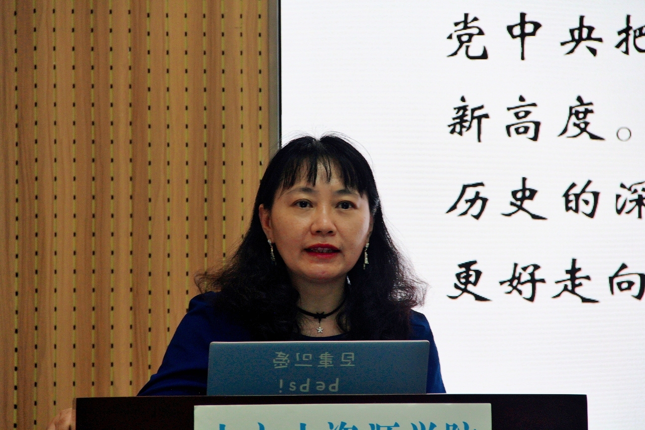 水文院水务、地信专业本科生党支部书记韦语涵以“学党史、知党恩、跟党走”为主题讲解了中国共产党艰难而辉煌的革命历程,引导党员们坚定理想信念,补足精神之钙,践行初心使命。