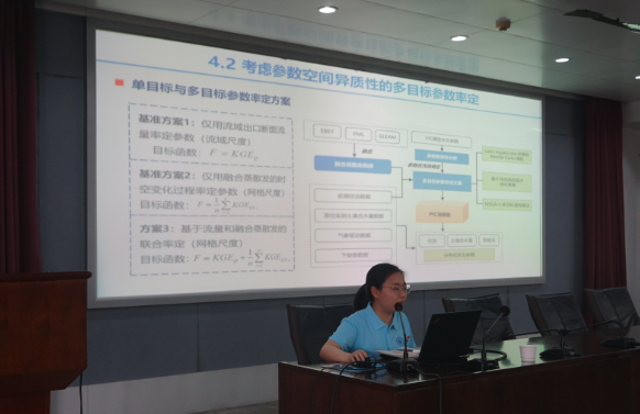 为促进校地双方进一步合作,博士团成员与黄委水文局的专家、技术人员就黄河流域水资源优化配置、洪水预报及水库调度等方面的科学问题和技术难题开展学术交流。双方代表共做了5场专题报告,报告题目分别为:《变化环境下考虑时空动态参数的分布式水文过程模拟》、《混合向量自回归与EGARCH-Copula模型的中长期径流概率预测方法》、《深度机器学习研究及其水文应用实践》、《基于GIS的黑白河流域水源涵养能力评价》、《黄河流域洪水预报》。报告结束后博士团成员还与黄委水文局的专家就若干工程技术问题和理论前沿进行了交流、探讨,对自己今后的学术研究方向有了更明晰的目标。
