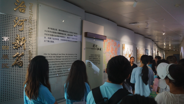 7月11日-12日,实践团分别前往模型黄河基地,黄河博物馆,花园口水文站、小浪底水利枢纽等地考察学习。在模型黄河基地,实践团师生在工作人员的引导下参观了与黄河等比例缩放的黄河下游河道试验厅以及世界上最大的人工控制降雨实验室。在黄河博物馆,团队依次参观了流域地理、民族摇篮、千秋治河、治河新篇及人水和谐五个展区,充分了解了建国以来我国水利建设的发展过程、取得的伟大成绩以及新时代下“人水和谐,保护黄河生态”的治黄理念。在花园口水文站,团队有序参观了花园口Cs34断面、花园口扒口记事广场、花园口水文站,并进站参观了花园口水文站前线指挥系统,了解了在“数字孪生黄河建设规划”指导下治黄措施从过去的零散化、无序化向数字化、网络化、智能化的变迁过程。在小浪底水利枢纽,实践团参观了小浪底大坝以及水力发电站内部,对工程的构造和功能、黄河调水调沙等知识进行深入学习,对于小浪底水利枢纽建设背后的红色故事以及其“让黄河成为造福人民的幸福河”的成就叹为观止并深感自豪。