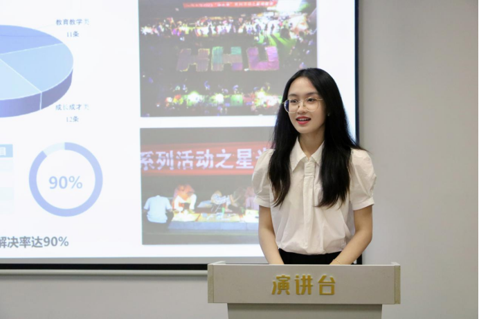 从大一的班长、院学生会干事,大二的院学生会主席团成员,大三的校学生会文艺部部长,到大四的校学生会主席团成员及校社联主席,张咪积极活跃在校、院、班各类学生工作的岗位上,绘就青春与梦想的底色。她开展互助宿舍建设、朋辈帮扶小组、英语每日打卡、成绩分析班会、学霸经验分享等班级活动,推动班级学风建设;策划水文院“水文杯”篮球赛与羽毛球赛、四六级模拟考试、趣味运动会等多项文体活动,丰富同学课余生活;负责主办校园十佳歌手大赛、社团巡礼月闭幕式晚会等十余场校、院各类文艺晚会,助力校园文化繁荣发展。“志”之所向,“愿”之所往,她时常身着河海蓝或志愿红的小马甲,出现在新学期迎新、校区搬迁、体育比赛等校内外各类活动的现场,书写奉献与温情的故事,全心全意为同学服务。她的领导、组织能力也得到了老师及同学们的认可,多次获评tyc太阳成集团9728“优秀学生干部”、tyc太阳成集团9728学生会“优秀骨干成员”等荣誉称号及tyc太阳成集团9728“社会工作优秀”奖学金。