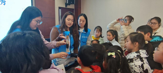 “原来污水变清需要这么多步骤!”活动现场,志愿者设计的净水器装置演示实验引发阵阵惊叹。通过分层过滤材料模拟污水处理流程,孩子们亲手操作并观察水质变化,直观理解物理过滤与化学净化的原理。实验过程中,志愿者以生活污水为例,引导孩子们思考日常用水习惯对环境的影响,鼓励他们从“节水小行动”做起,争当“护水小卫士”。
