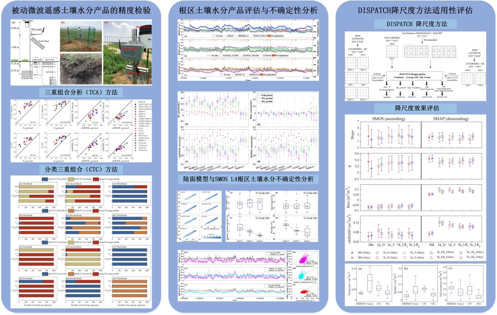 针对被动微波遥感土壤水分产品存在的精度检验问题,系统评估了多源遥感土壤水分产品在不同气候区的适应性,论证了三重组合和分类三重组合方法在量化土壤水分产品质量中的鲁棒性,进一步探明了误差的可能来源;针对当前根区层土壤水分产品模拟精度不确定性大、量化方法缺乏统一标准的问题,全面量化了气象数据、模型参数化方案差异、验证尺度等因素对根区层土壤水分模拟精度的影响,构建了适用于中国多气候类型区域的长时间序列根区层土壤水分分析模型,显著提升了根区层土壤水分的模拟精度;针对基于土壤蒸发的DISPATCH降尺度方法在蒸发受能量限制地区的适用性不明的问题,通过在淮河流域测试以土壤蒸发效率为因子、泰勒展开法为核心的多种校准模式,提出了适用于能量受限区域的遥感土壤水分降尺度方法优化方案,拓展了其在不同生态环境下的应用潜力。