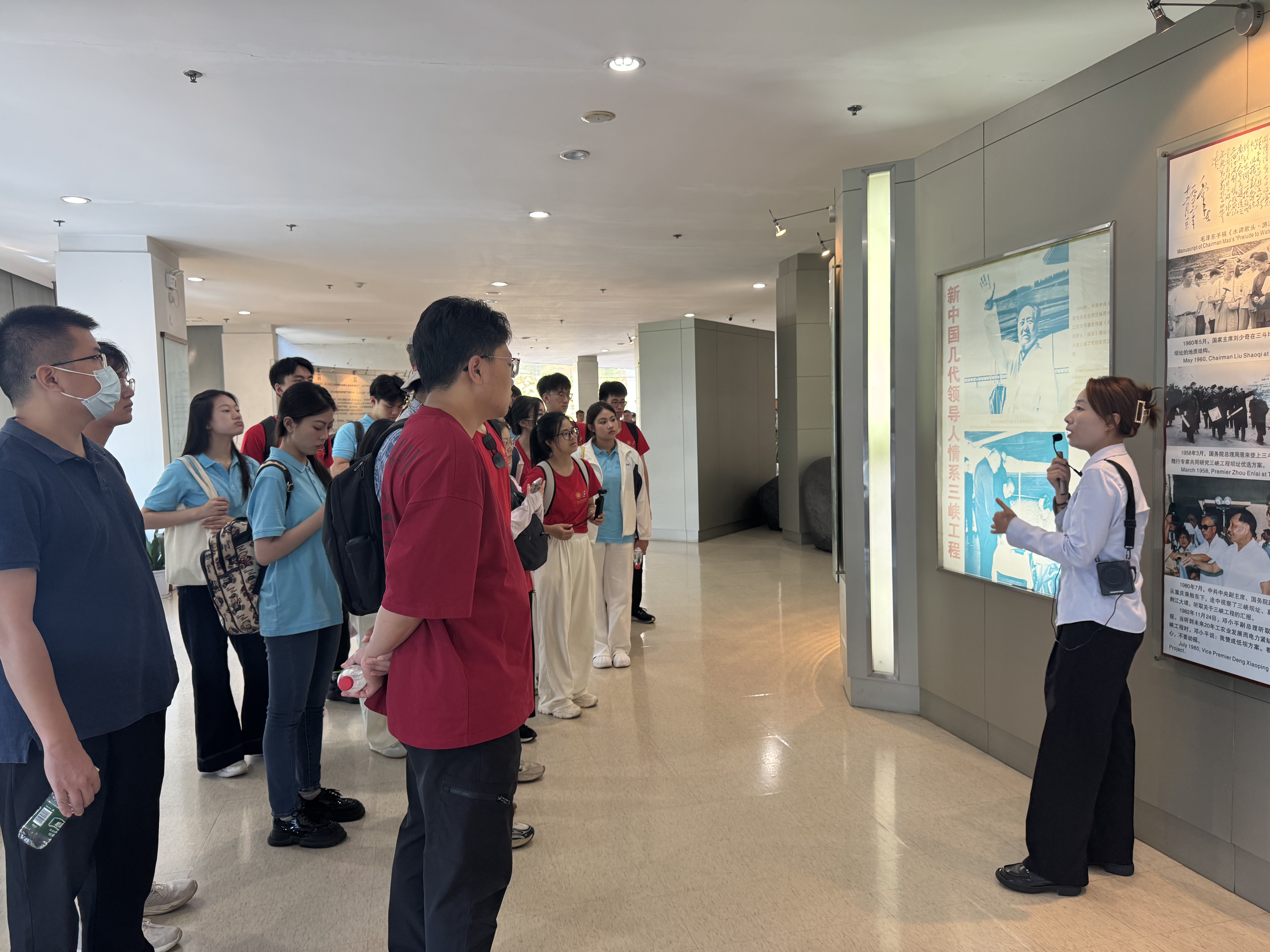 为深入领略长江治理的历史脉络与新时代水利工程的科技成就,博士团全体成员来到三峡水利枢纽,先后参观了三峡工程展览馆、五级船闸、发电机组核心区以及梯级调度通信中心,听取了技术专家的详细讲解,深入了解世界最大水电站的工程设计情况、生态保护及综合效益。随后,博士团走进三峡工程博物馆,通过珍贵文物、影像资料和数字化展陈,系统学习从古至今长江流域的治水智慧。此次考察中,博士团成员深刻体会到了习近平总书记“共抓大保护、不搞大开发”的重要指示精神,深切感受了到“大国重器必须掌握在我们自己手里”的深刻内涵。