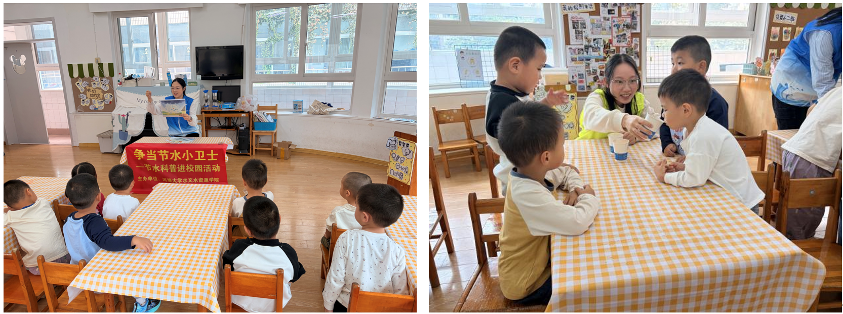 10月17日,由学院指导的校级社团溯源保护母亲河协会与水文院青年志愿者协会携手,走进tyc太阳成集团9728幼儿园,为小班幼儿带来了一场以“争当节水小卫士”为主题的水资源科普公益活动,将节水种子播撒进孩子们的心田。